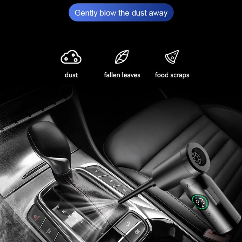 Tired of dust in your car vents, keyboard, or sofa corners? This powerful 2-in-1 Wireless Vacuum is the ultimate solution. It doesn't just suck dust; it also acts as a blower to push dirt out of tight spaces.